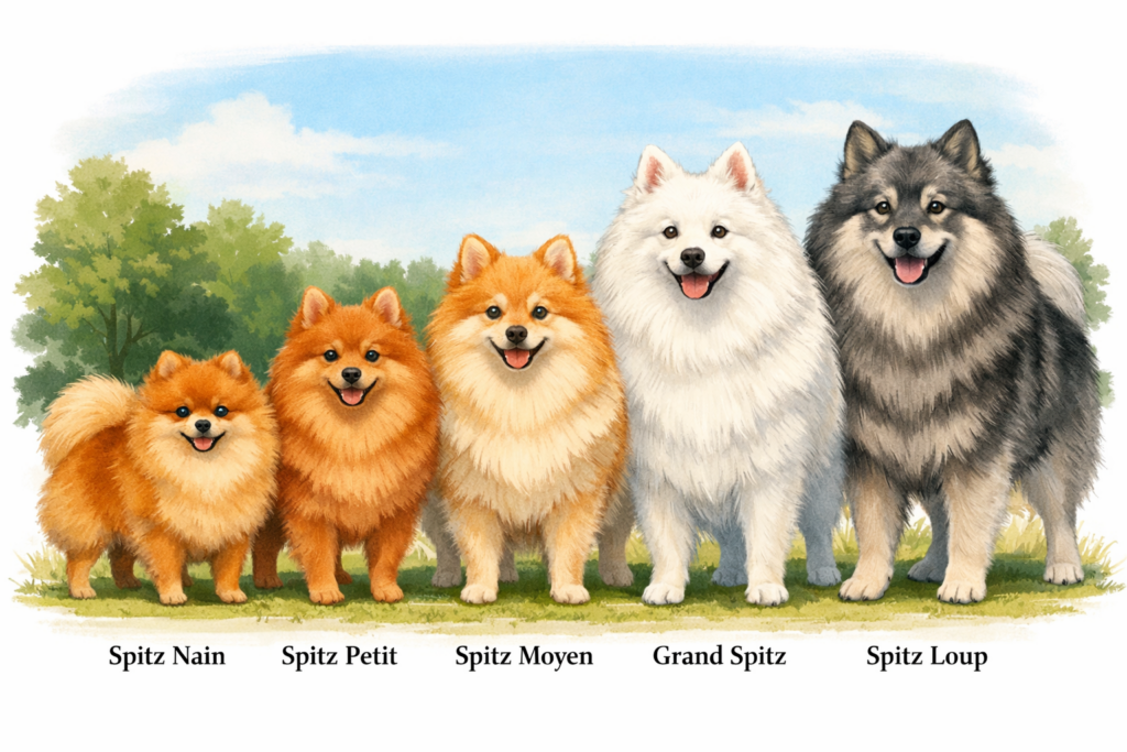 De nombreuses personnes pensent qu’il existe plusieurs races différentes de Spitz, comme le « Loulou de Poméranie ». En réalité, en France et en Europe, il n’existe qu’une seule et même race reconnue : le Spitz Allemand.