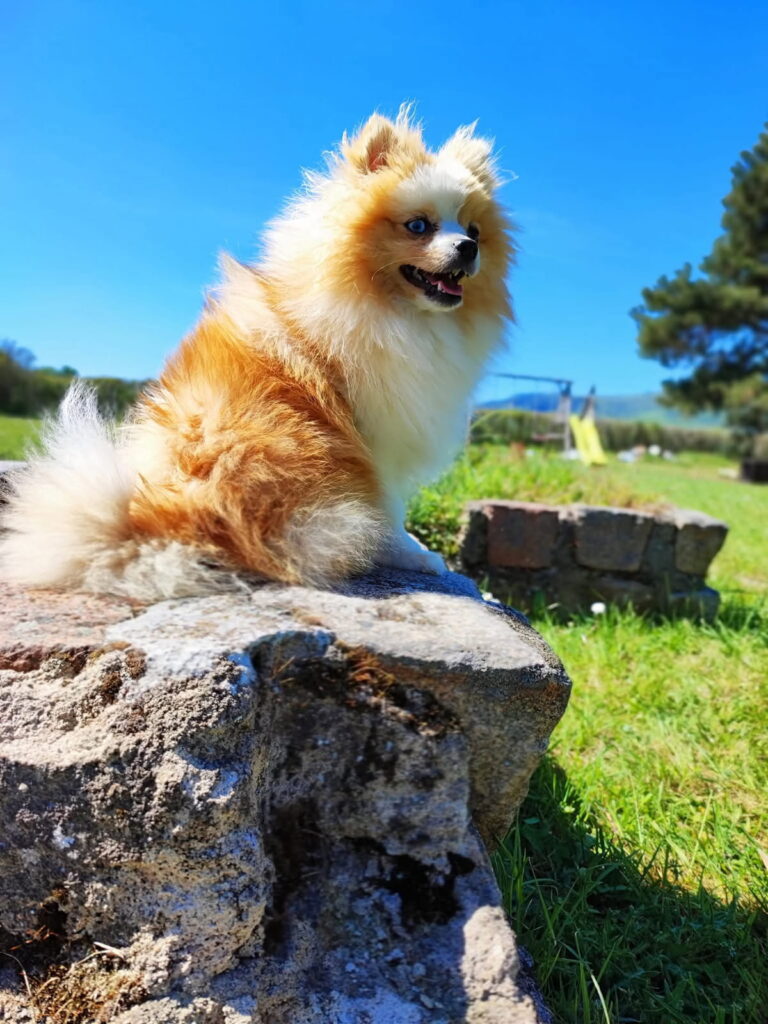 Myrtille est une ravissante petite Spitz à la robe merle et Tan, héritage original d’une maman particolore et d’un papa orange, qui lui confère un charme tout à fait unique notamment avec ses yeux vairons.